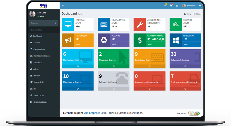 O sistema traz uma visão macro do parque de ativos, os gestores de TI veem um Dashboard como uma ferramenta que torna a gestão mais ágil.